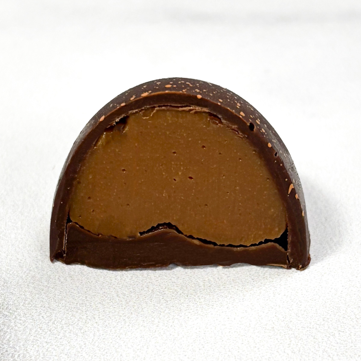 Dark chocolate with hints of espresso filled with a silky caramel that is finished with the perfect touch of fresh cream.