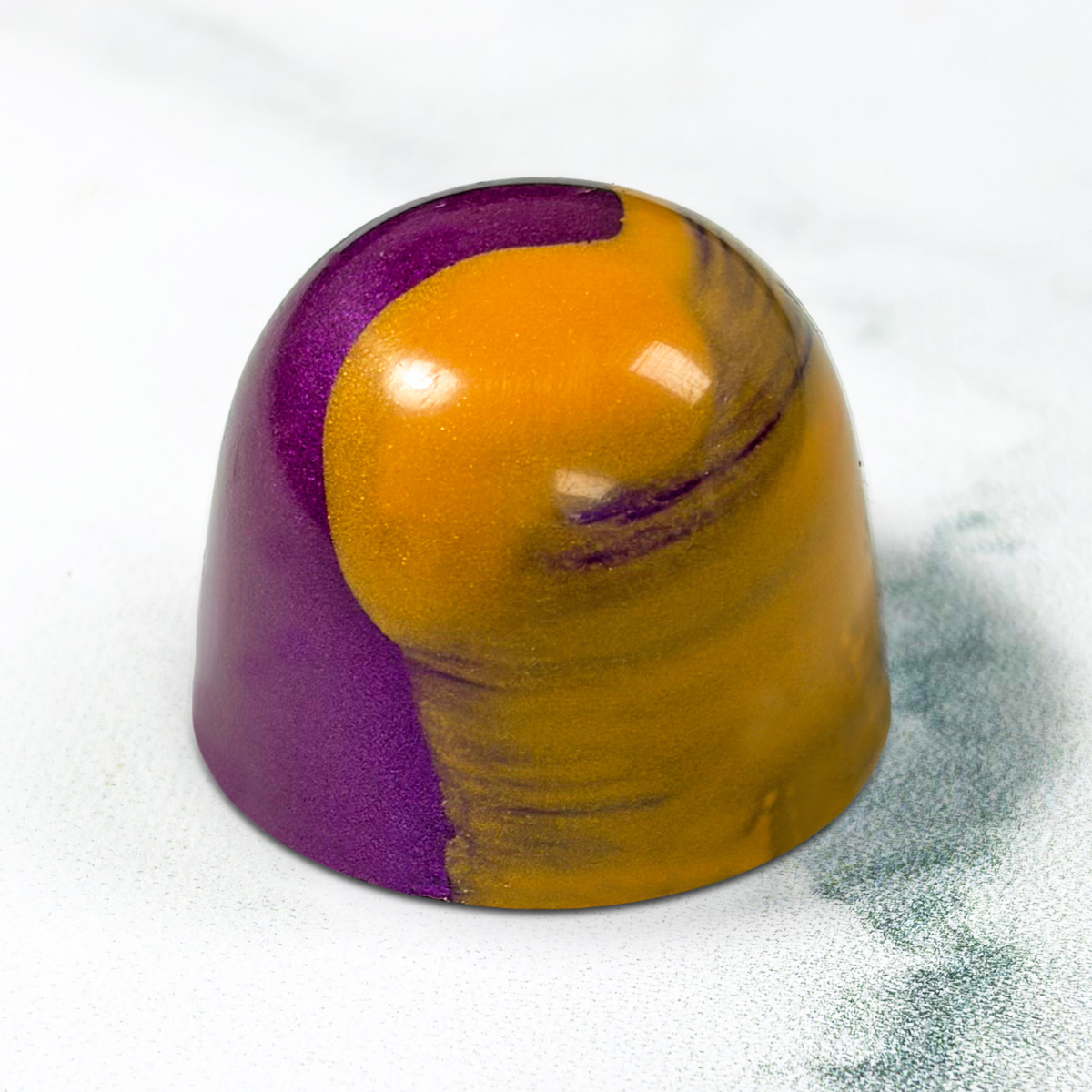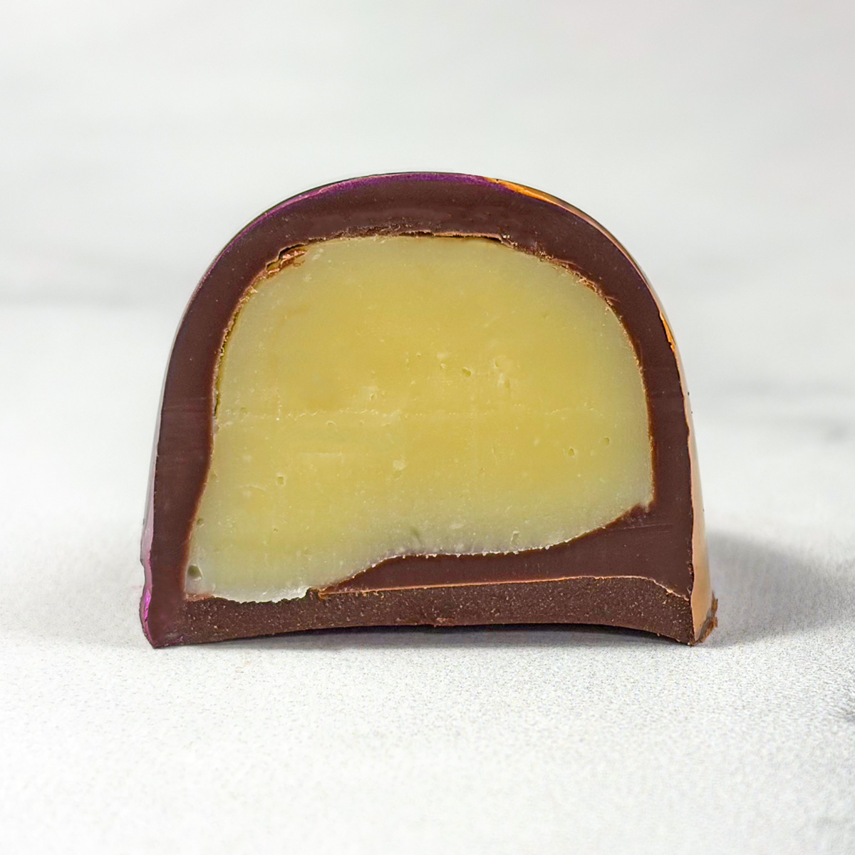 A dark chocolate shell filled with a white chocolate lavender & honey ganache.